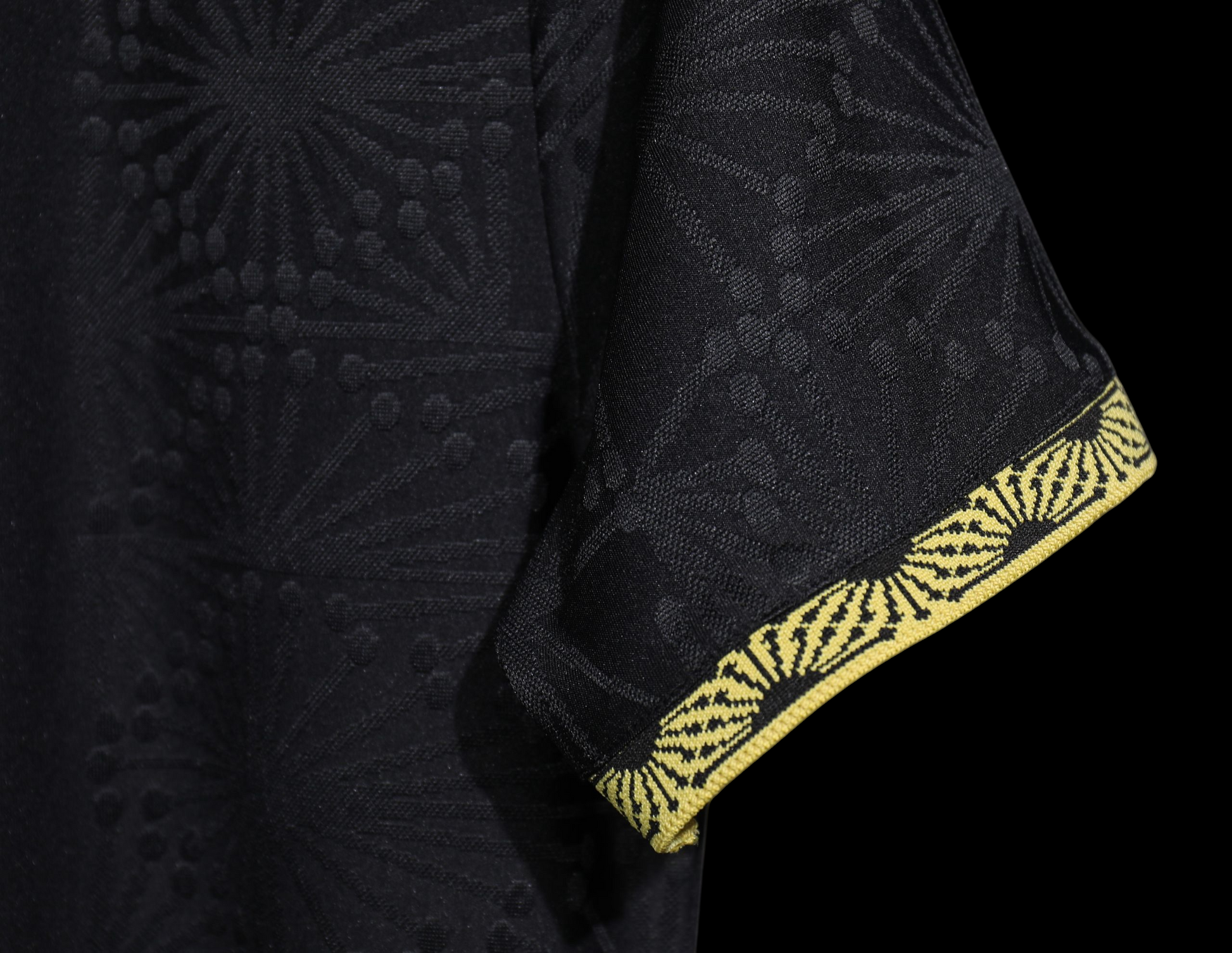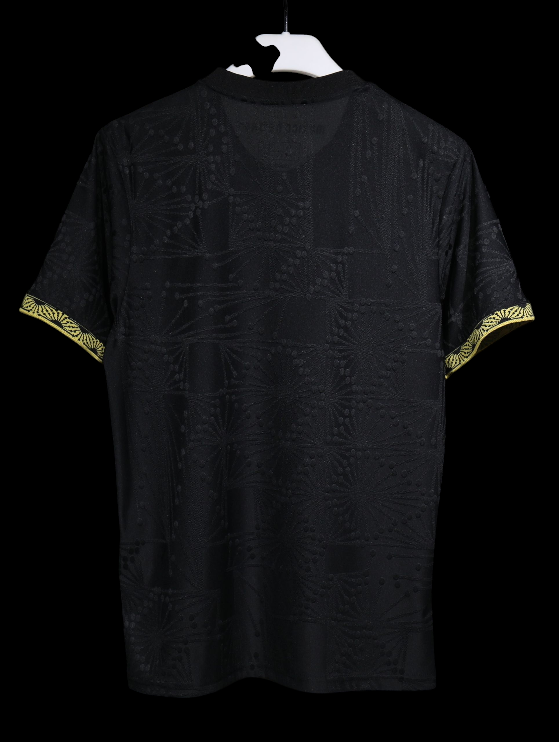 The product is a black Mexico national soccer team jersey, featuring an embroidered logo. This fan version jersey is available , making it suitable for both men and women. This jersey is perfect for supporters of the Mexico national soccer team looking to show their pride and team spirit.